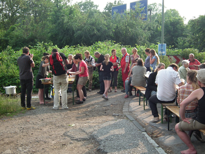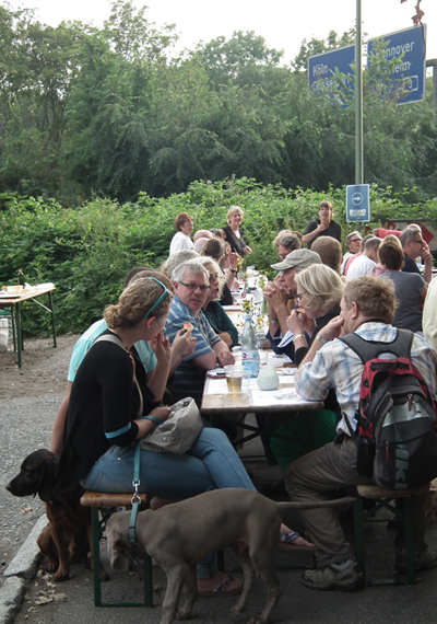 AB 17:00 FINISSAGE B1|A40 Der Gallische Tisch bei Familie Evertz im Rahmen von Jeanne van Heeswijk / Marcel van der Meijs / Britt Jürgensen „Trampelpfade – Eine Wanderausstellung zum kleinen Glück“ Großes Fest am und um den Gallischen Tisch aus dem Jahr 2010 mit Reibekuchen, Tanz und Live-Musik für alle Bewohner des Kreuzes Kaiserberg und andere Besucher.