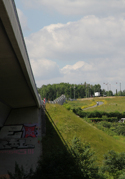 Wo Landschaft manchem noch als Natur erscheint, ist sie doch längst Kulturlandschaft und den jeweils aktuellen Moden unterworfen. In nahezu dörflicher Idylle schlängeln sich Emscher und Rüppingsbach aktuell renaturiert entlang von Villen, Schrebergärten und Flutungswiesen durch Schönau, Emschertal und unter der A40 und der Schnettkerbrücke durch. Wie sich das Verhältnis zur Landschaft über die Jahrzehnte geändert hat, zeigt sich dabei deutlich an verschiedenen Sequenzen, die entlang des Wanderwegs „Landschaftspark B1|A40“ gezeigt und zu Orten künstlerischer Interventionen werden. Von diskursiven Architekturmonumenten, an denen sich Forschungsprojekte der TU abbilden, bis zum Windpark der Sonderklasse zeichnet sich die Landschaft vor großem Panorama als ihre eigene Rekonstruktion ab.