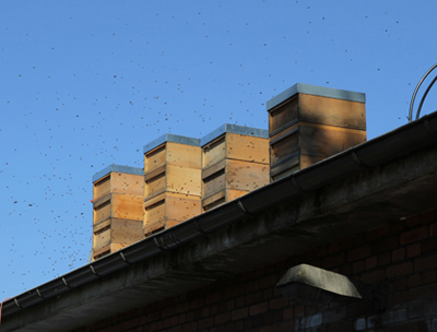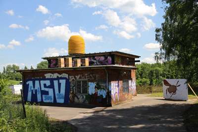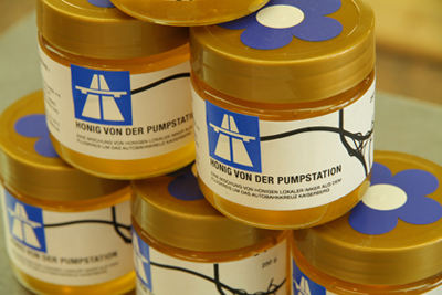 Dass Finger ausgerechnet den Autobahnknoten als Standort für ihr städtisches Bienenlabor wählt, hat noch weitere Gründe. Die Gruppe, die sich seit längerem mit sozio-ökonomischen Strukturen im städtischen Kontext beschäftigt und dabei oft alternative Lebens- und Überlebensformen fokussiert, sah sich eines Tages erneut mit den Fragen des eigenen wirtschaftlichen Überlebens konfrontiert. Da die Distribution von Kunst im knallharten Vergleich mit anderen Wegen des Broterwerbs nicht mithalten konnte, transformierten Andreas Wolf und Florian Haas, die beide ein ausgeprägtes Interesse am Imkern hatten, ihren künstlerischen Projektraum vor einigen Jahren flugs in die „Stadtimkerei“. Seitdem produzieren sie städtischen Honig, der gegenüber vergleichbaren Landprodukten geschmacklich äußerst komplex daher kommt, da die städtische Balkonlandschaft inzwischen eine skurrile Form des Artenreservoirs mit einer wesentlich komplexeren Flora aufweist als die Monokulturen der Landwirte. Das städtische Bioprodukt ernährt seitdem auch die beiden Imker mit Bienenstandorten an städtischen Verkehrsadern oder dem Museum für Moderne Kunst in Frankfurt.
