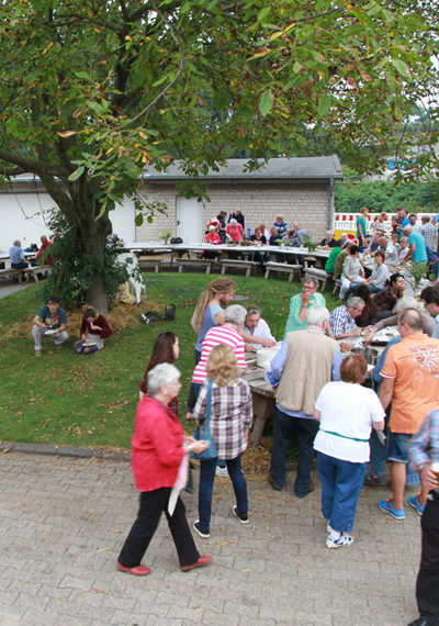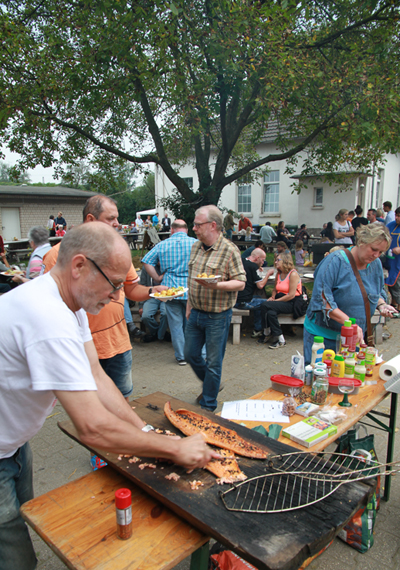 AB 17:00 FINISSAGE B1|A40 Der Gallische Tisch bei Familie Evertz im Rahmen von Jeanne van Heeswijk / Marcel van der Meijs / Britt Jürgensen „Trampelpfade – Eine Wanderausstellung zum kleinen Glück“ Großes Fest am und um den Gallischen Tisch aus dem Jahr 2010 mit Reibekuchen, Tanz und Live-Musik für alle Bewohner des Kreuzes Kaiserberg und andere Besucher.