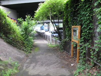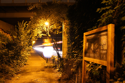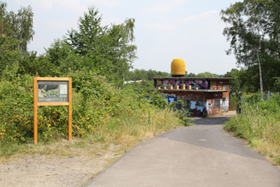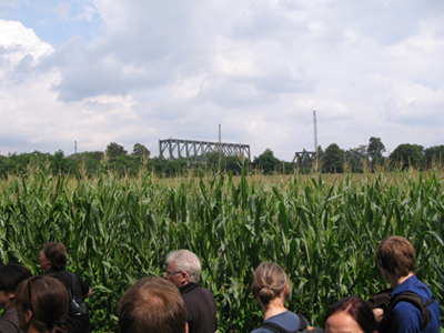 EIN WANDERWEG Im Projekt B1|A40 entstand hier der „Landschaftspark Kreuz Kaiserberg“ durch die simple Verknüpfung und Ausweisung sichtbarer wie verborgener Typologien, Räume und Eingriffe, die den Ort als eine Landschaft erkennbar machen, die sich entlang der lokalen Einflüsse und der kulturellen Prägungen ihrer Protagonisten entwickelt hat. In Form eines eigentümlichen Wanderwegs entlang dieser örtlichen Typologien führt eine Tour vom anliegenden Duisburger Zoo, dessen Brücke über die A3 als Tor zu diesem Raum gilt, auf den Kaiserberg, der sich als städtische Parklandschaft und klassisches Naherholungsgebiet gestaltet. Am Fuß des Berges trifft man auf die Bahntrasse des ICE, die durch klassische Schienenrandnutzungen wie Schrebergärten und Taubenzucht begleitet mitten ins Kreuz führt. Die im üblichen Stil gehaltenen Karten und Infotafeln informieren allerdings nicht im herkömmlichen Sinne. Sie zeigen den Schrebergarten in seiner Geschichte als Form der Landkontrolle und sozialen Befriedung. Das aus Hecken geschnittene Zoosignet über der Autobahn erweist sich als Schildbürgerstreich, der zeigt, wie man in der Region geschickt die Gesetze umgeht, hier aktuell das Werbeverbot an der Autobahn durch einen Baum in Buchstabenform, der laut Gärtner „nun mal so wächst“. Dass Graffiti zur Sprache der Straße gehört, ist jedem bewusst, allerdings nicht, wie sich die Szene konzipiert, verhält und verständigt. Auch dass der Zoo als Repräsentation von Natur in der Stadt eine wichtige soziopolitische Rolle spielt, wird hier erläutert. So zeigen die Tafeln eine neue Landschaft, die sich subtil gegen Konventionen auflehnt, andere Strategien im Umgang mit Land und Sozialität sucht und vorhandene Formen widerständig überschreibt: im Zentrum des Knotens, der überraschend gut durch Fußwege erschlossen ist, befindet sich die Pumpstation, die die von den Fahrbahnen abfließenden Wässer sammelt. In nahezu idyllischer Umgebung hat sich in den Flutungsbecken ein Biotop aus Wasserlilien und Rohrkolben gebildet. Nur der sonore Lärm verweist darauf, dass dieses Biotop durch die Autobahninfrastruktur ermöglicht wurde. Die heftig kontrastierten Wechsel zwischen Feuchtbiotop und Autobahnterror schlagen einem auf dem Weg mehrfach entgegen und machen die Wanderung von zwei Stunden Länge zum ambivalent sublimen Ereignis zwischen Naherholung, Schock und Verwunderung. Überquert man die imposanteste Kreuzung des Knotens, wo sich ICE-Trasse, A3 und A40 überlagern und die als erstaunliche Verdichtung transitorischer Räume im Projekt den Namen „Kaiserberger Hölle“ bekam, findet man unmittelbar hinter der Schallschutzwand eine bürgerliches Wohnidyll mit klassischem Dorfcharakter: Einfamilienhauszeilen, Kirche und Proberäume für Schwermetaller im Bunker führen hinter der Schallschutzwand im Ortsteil Werthacker ein nahezu einträchtiges Miteinander. Etwas weiter haben sich landwirtschaftliche Betriebe, Ponyhof und Fischzucht die Nachbarschaft der Autobahn auf eigene Weise zunutze gemacht: Der Bauer nutzt die mächtigen Brücken als Trockenplatz und Unterstand für Hornvieh, die Tiere des Ponyhofs grasen zwischen den Fahrbahnen und bei Delikatfisch Braun entdeckt man im Schatten der großen Straße eine Forellenzuchtanlage, die wie ein Wasserschloss im Ruhrgebietsstil formuliert ist. Dass eine Anliegerin der Autobahn in ihrem kleinen Paradies ein informelles Asyl für Tiere beherbergt, dass direkt nebenan eine legendäre Miederwarenfirma ihren Sitz hat und zu dieser Landschaft schon Gedichte verfasst wurden, die angesichts des hinter der Tafel zu sehenden Autobahnkreuzes nachdenklich stimmen, lässt den Wanderer die Geschichte dieses Ortes erahnen, der oft verändert, mehrmals zerschlagen, und trotzdem von seinen Bewohnern erhalten, entwickelt und immer wieder neu erfunden wurde. In einer mühevoll stetigen Arbeit in Reaktion auf die äußeren Zumutungen haben ihm die Menschen eine hartnäckige Beständigkeit verliehen, die nun wiederum bedroht ist. Der Besitzer des Dörnerhofs, der schon beim Bau des Autobahnkreuzes teilenteignet wurde und gegen die widrigen Umstände den elterlichen Hof wieder aufgebaut hat, kämpft aktuell schon wieder: gegen einen Autohof mit Hotel und Spielkasino, der das filigrane biologische wie soziologische Gleichgewicht im Kreuz ins Wanken bringen würde. Nochmals die so passende wie eindrucksvoll dichte Beschreibung Brinckerhoff Jacksons: „Dies sind Landschaften, deren Bewohner keine Monumente hinterlassen, sondern nur Zeichen des Aufgebens oder Erneuerns. Mobilität und Wandel sind die Schlüssel zur vernakulären Landschaft, aber eher unfreiwillig und widerstrebend. Sie sind nicht Ausdruck von Ruhelosigkeit und Suche nach Verbesserungen, sondern vielmehr von einer nicht enden wollenden, geduldigen Anpassung an die Umstände. Viel zu oft geht diese Anpassung auf die willkürliche Entscheidung der Mächtigen zurück. Aber ebenso spielen natürliche Bedingungen, Ignoranz, das blinde Vertrauen in lokale Konventionen und das Fehlen langfristiger Ziele eine Rolle: das Fehlen dessen also, was wir zukünftiges historisches Bewusstsein nennen würden.“Der Wanderweg im „Landschaftspark Kreuz Kaiserberg“ versucht, ein dauerhaftes Bewusstsein für den Wert einer solchen Landschaft und ihrer Funktion für die Gesellschaft zu schaffen. Gegenüber Brinckerhoff Jacksons Einschätzung verleihen die Anwohner im Kreuz Kaiserberg der Landschaft, die unter ökonomischen Gesichtspunkten als vakante Restfläche zur Disposition steht, einen dauerhaften Moment an Würde und Perspektive, wenn sie nicht um die Kirche als Monument, sondern um ihre Funktion als Gemeinschaftszentrum kämpfen. Wenn die Bewohner und Anlieger des Dörnerhofs nicht um ihr Gut, sondern schlicht um das soziale Klima ihres Lebensraumes kämpfen. Sie verleihen diesem Raum, der einer permanenten Neugestaltung ausgesetzt ist, in der stetig ausgeübten Praxis der Widerständigkeit und Selbstverantw