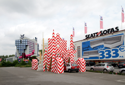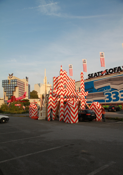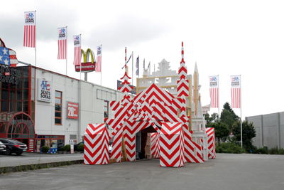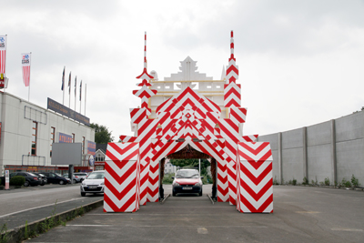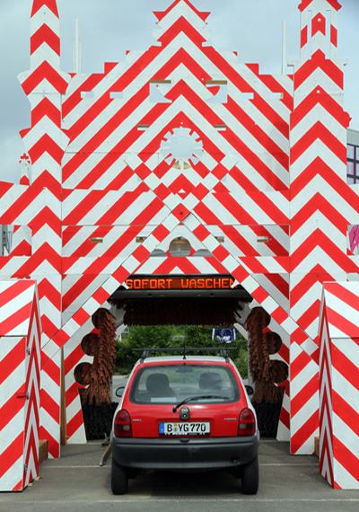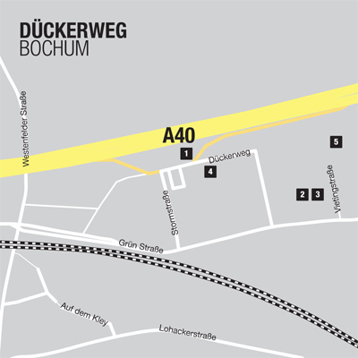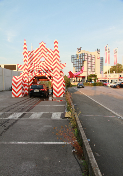 Am Dückerweg, einer klassischen Gewerbeagglomeration mit den typisch überzogenen Werbeeinheiten, wendet sich das Team der KUNSTrePUBLIK an die fahrende Bevölkerung. Ihr Waschportal „Tor des Westens“ dient als Begrüßungsportal für diejenigen, die aus fernen Ländern zu uns kommen, um mit uns weiter am wirtschaftlichen Aufschwung zu arbeiten. Das symbolische Waschen des Wagens reflektiert genauso wie die Fassade der Anlage Begrüßungs- und Reinigungsrituale verschiedenster Kulturen. Während der Durchfahrt lauscht der Fahrer den Gesängen heimischer Chöre, die zu diesem Ritual das ihre beitragen – eine globallokale Begegnung am Rande der A40.