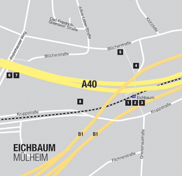 Der Wanderwegabschnitt Mülheim führt von der U18-Station über Felder und Wiesen zum Bauernhof an der A40, zu Mikro Rennstrecke und Arbeitersiedlung und zeigt die Heterogenität einer innerstädtischen Landschaft, wie sie nur in der Anbauverbotszone der A40 entstehen konnte.
